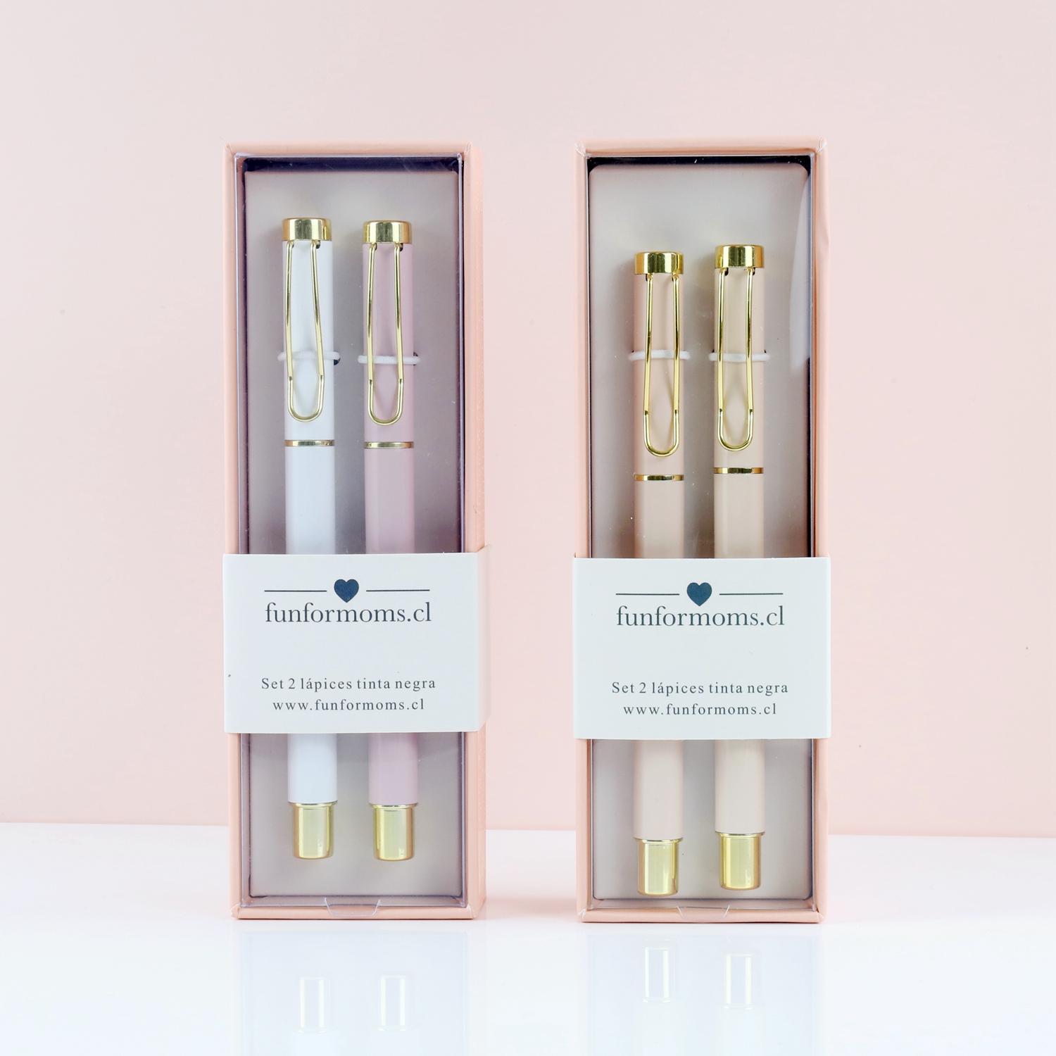 This pen gift set includes two elegantly designed ballpoint pens featuring soft pastel colors and refined gold accents, presented in a clean and stylish box. The combination of modern aesthetics and practical functionality makes it a suitable choice for both personal use and business gifting.