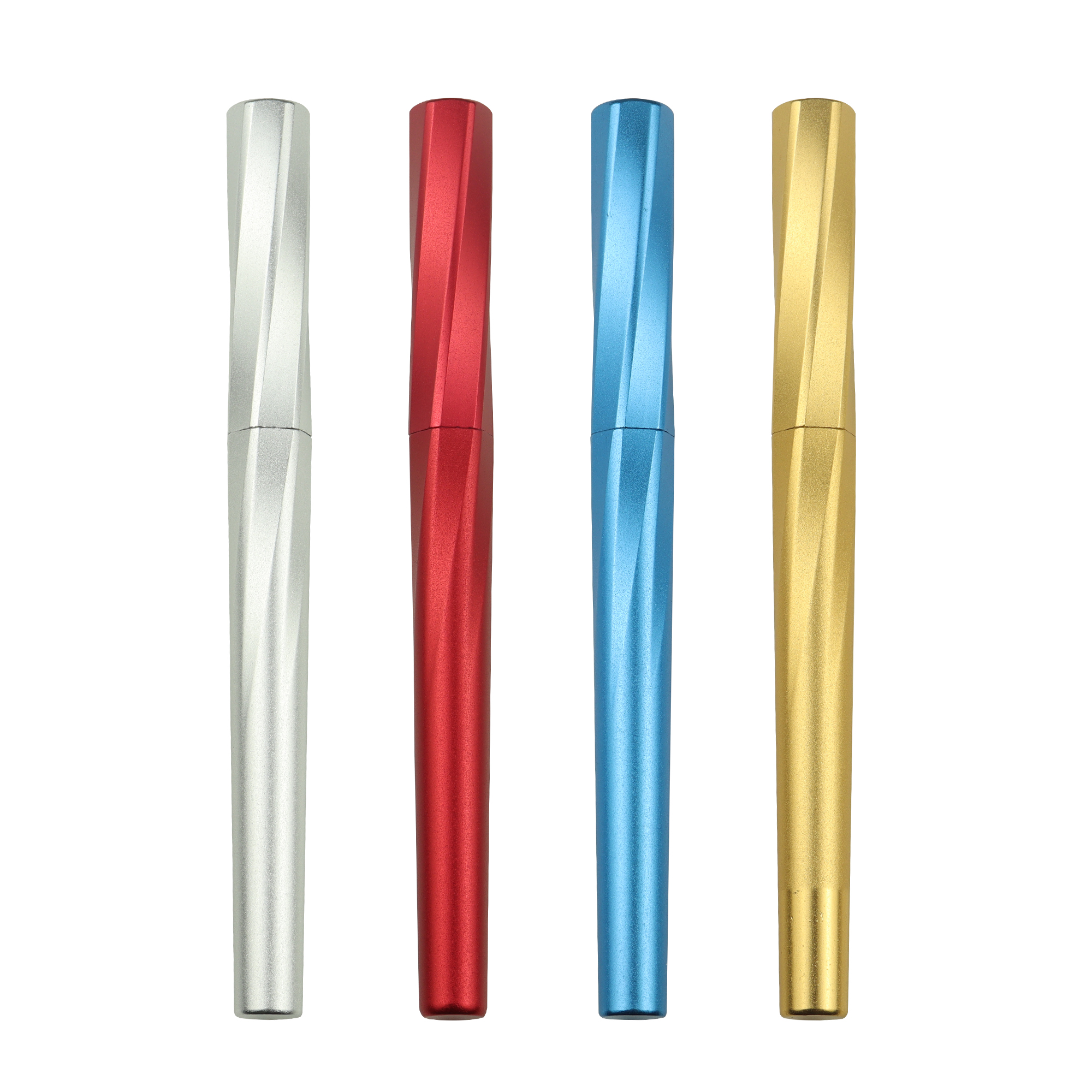 This business metal ballpoint pen features a smooth twist-action mechanism, allowing easy and stable extension of the pen tip by simple rotation. The faceted metal barrel design enhances grip comfort while adding a modern and professional appearance.