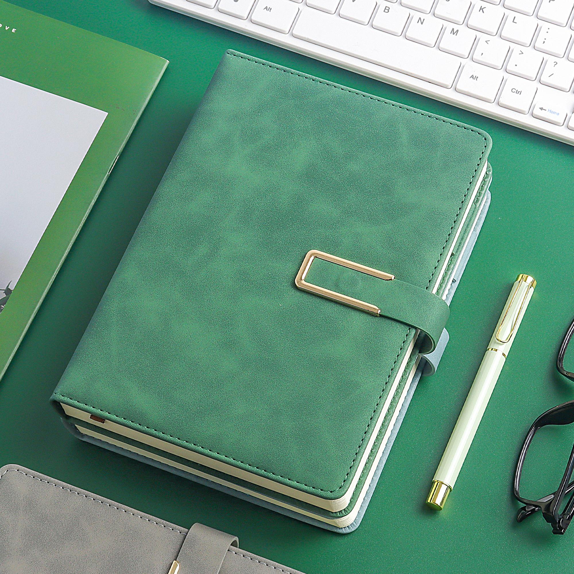 This magnetic business notebook features a smooth PU leather cover and a metal magnetic buckle closure that keeps the notebook securely closed while adding a premium visual touch.