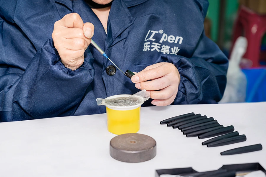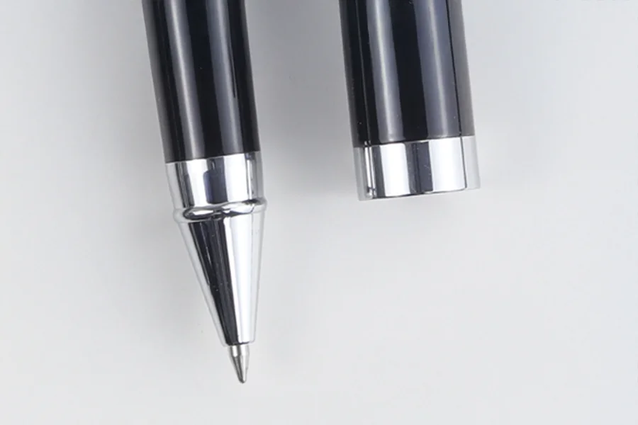 Standard 0.5mm needle point for precision or 0.7mm bullet tip for smoothness. Ink available in Blue, Black, Red, or custom Pantone colors.