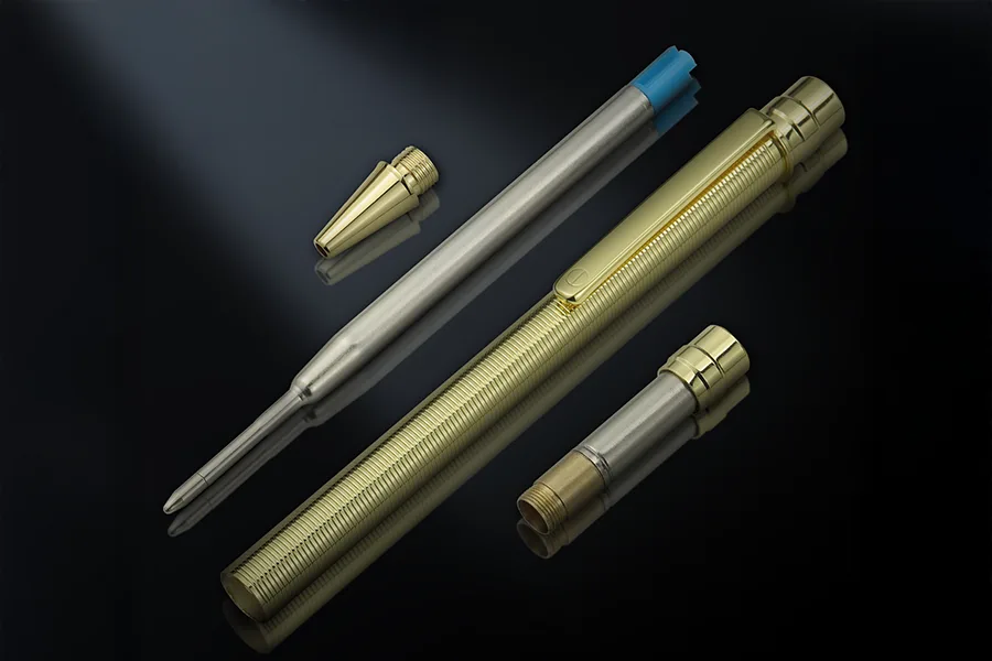 Choose Aluminum for a lightweight yet durable feel ideal for mailing campaigns or Brass for a heavy substantial feel preferred by executives.