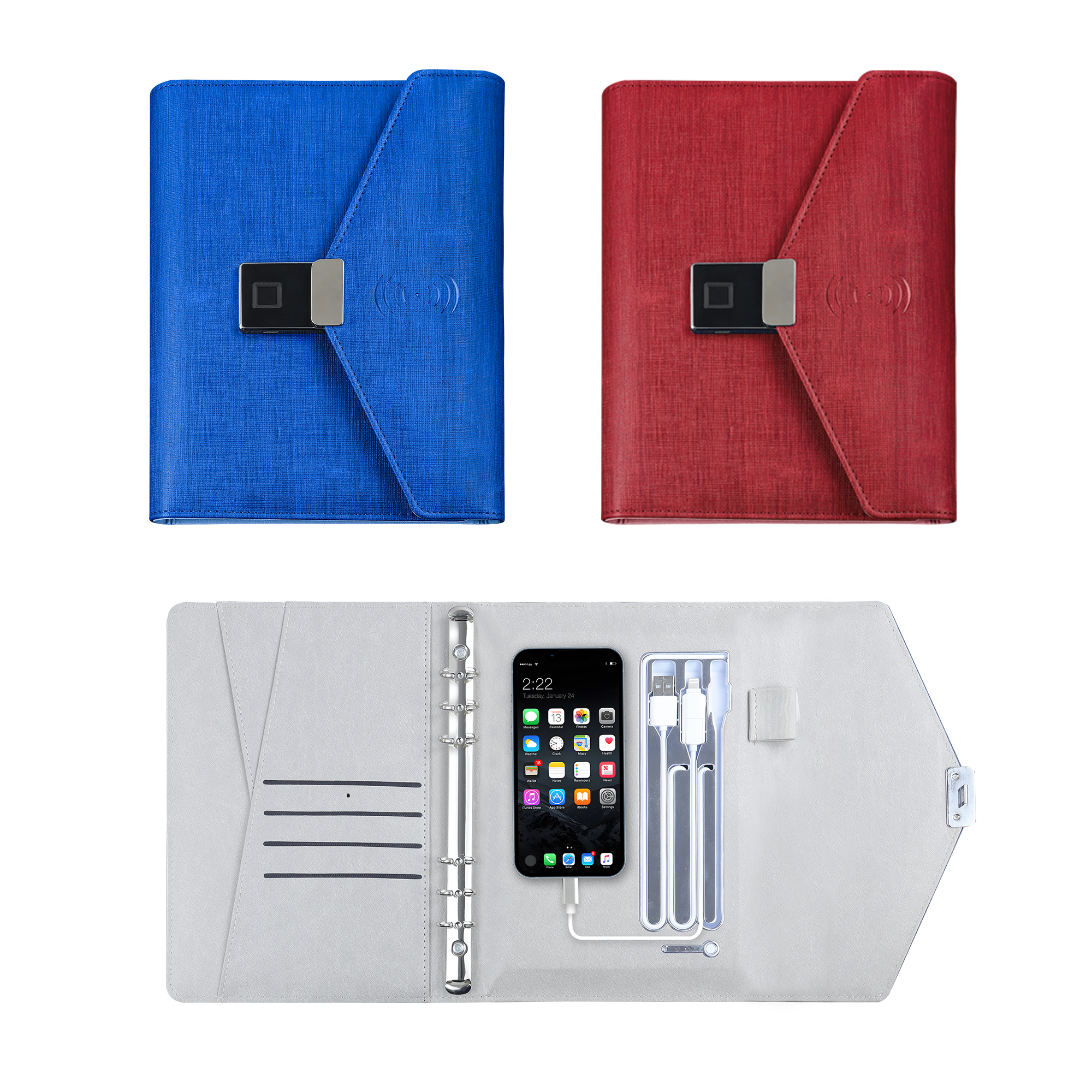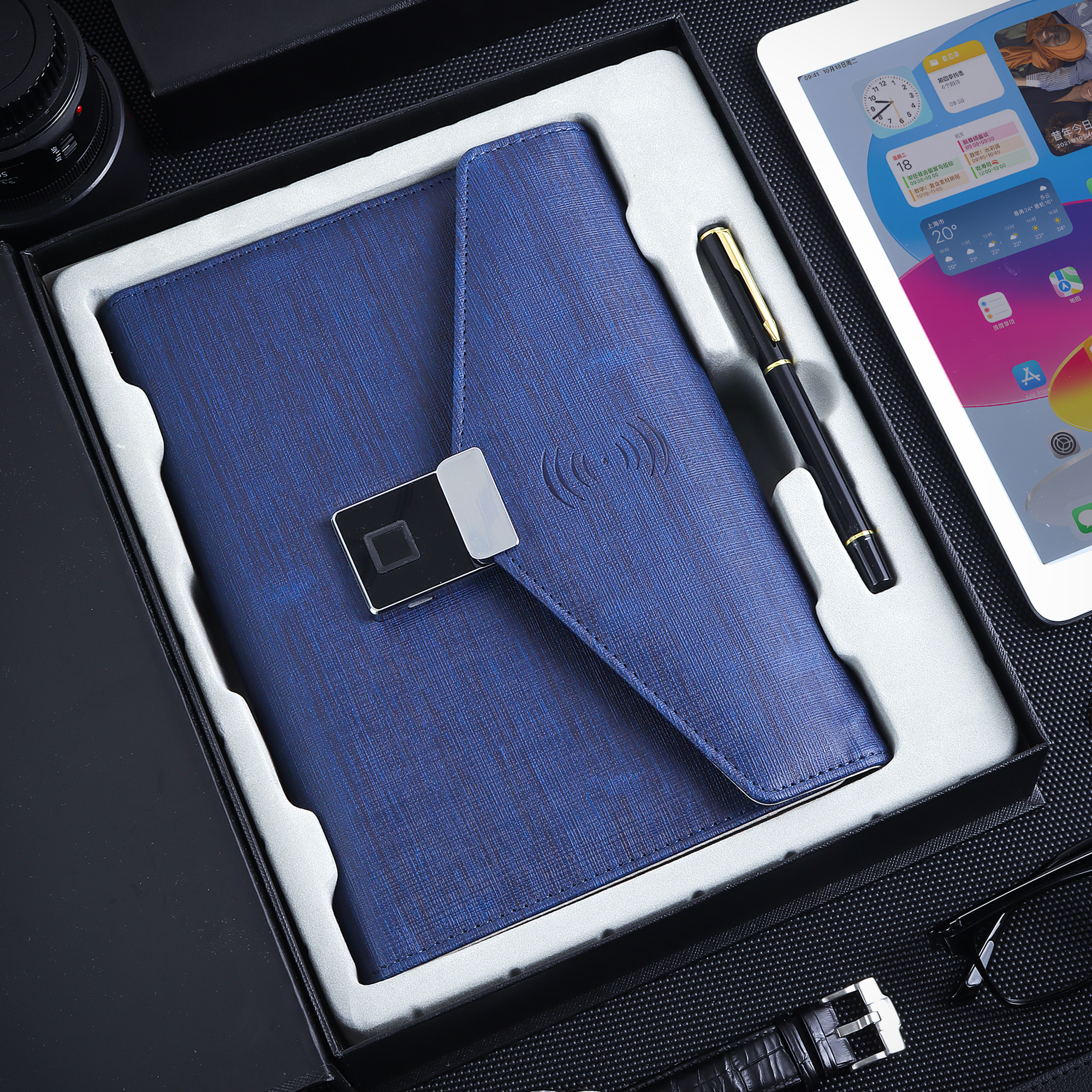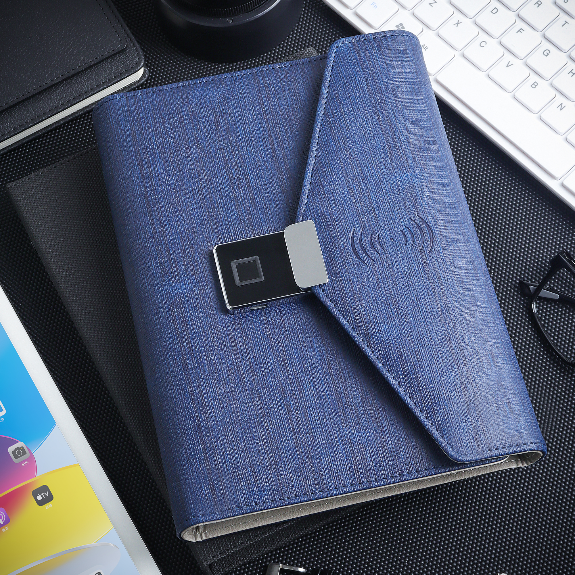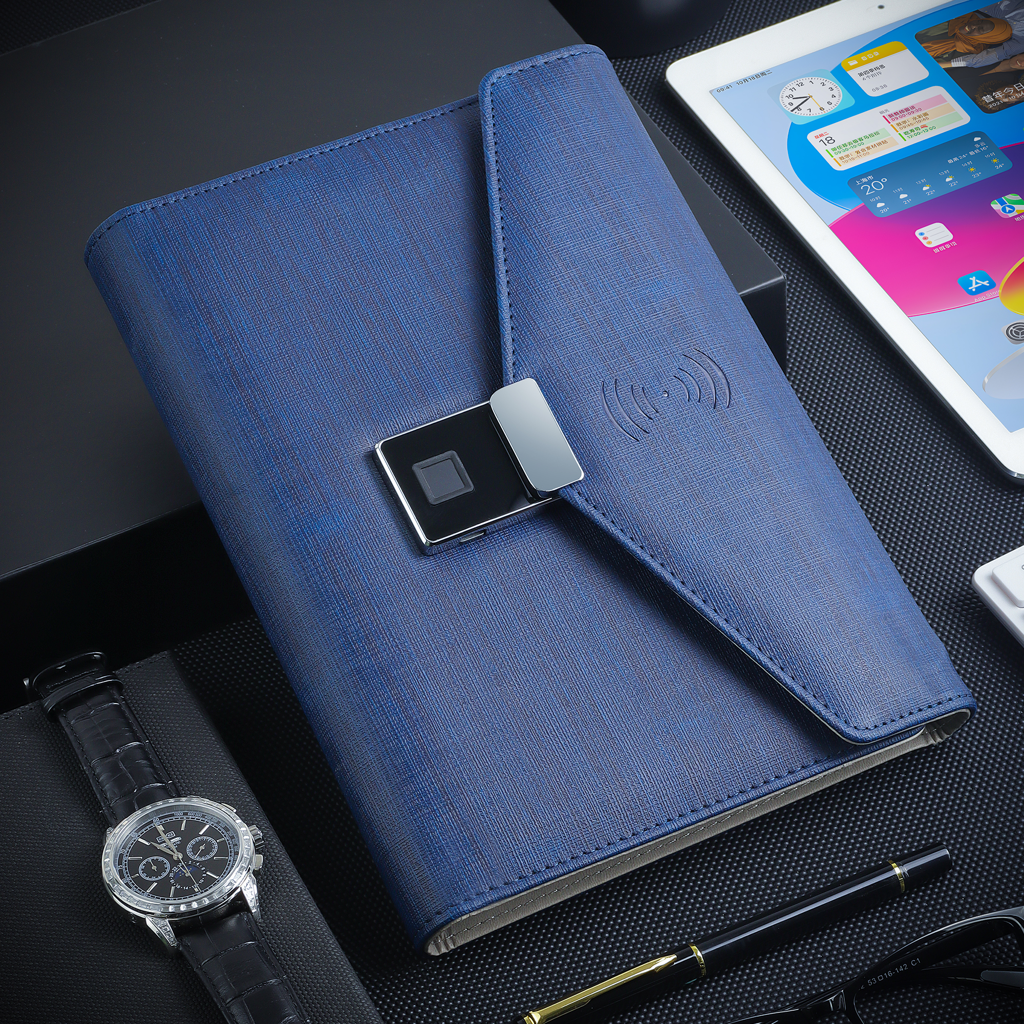 This smart tri-fold charging notebook integrates fingerprint security, wireless charging and built-in power bank into one elegant business organizer. Designed for professionals who need both data protection and mobile charging convenience, it offers a complete solution for meetings, business trips and daily office use.