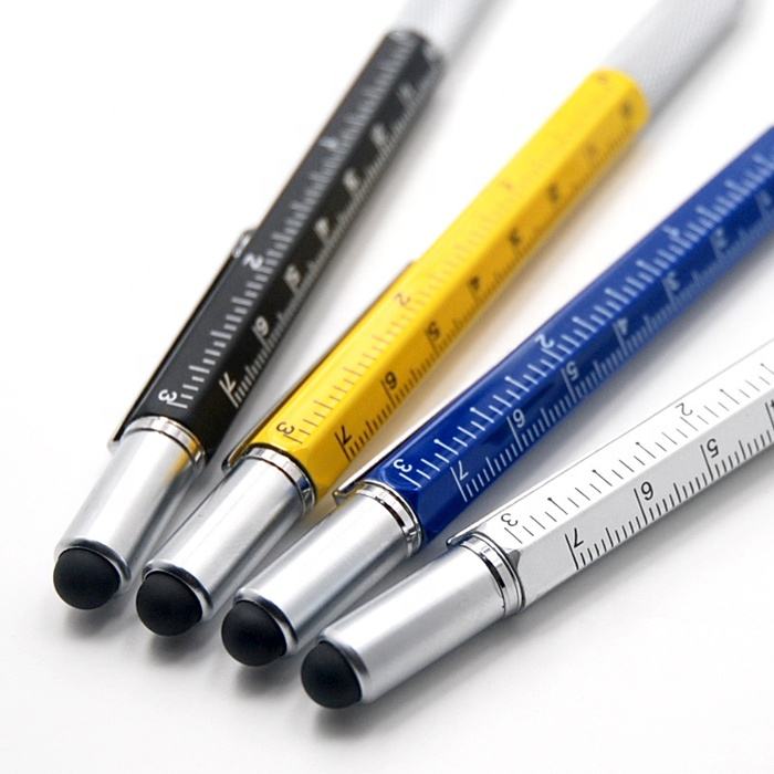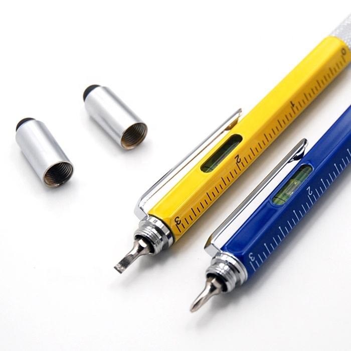 This multi-function metal pen combines writing and basic tool functions into one compact design. In addition to smooth ballpoint writing, the pen body features a printed ruler scale and an integrated bubble level, making it useful for simple measurements and alignment tasks.